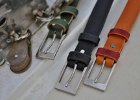Různé šířky opasků (podle příležitosti - k obleku, k šatům nebo na volný čas). Mnoho různých provedení - neobšité nebo obšité, jednoduché nebo dvojité, jedno- i vícebarevné, vše záleží jen na vás! - Spony - mosazné nebo nerezové